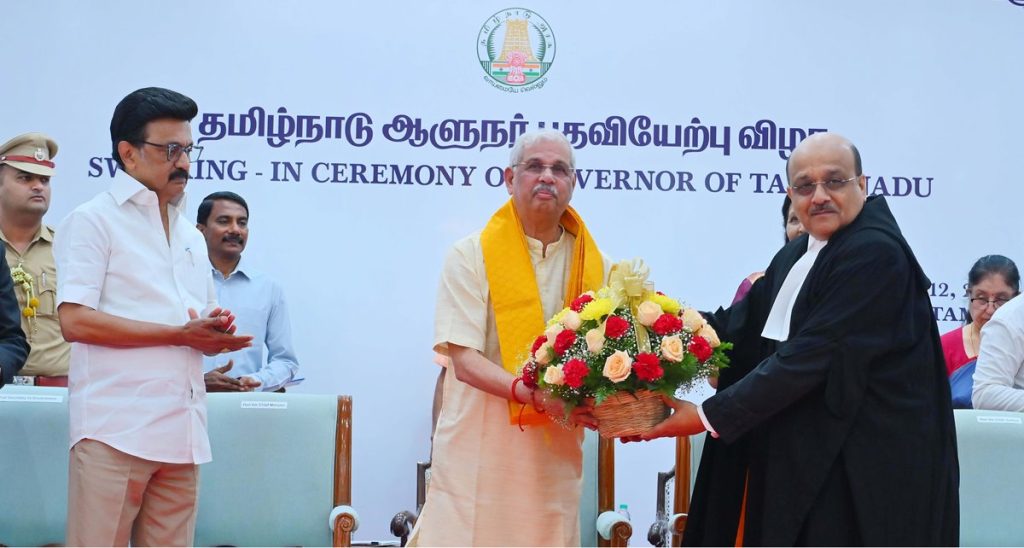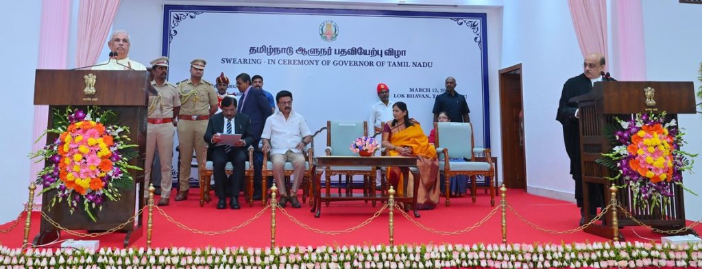 Hon’ble Justice Thiru.Sushrut Arvind Dharmadhikari,Chief Justice of Madras High Court, administered the Oath of office to Thiru.Rajendra Vishwanath Arlekar as Hon’ble Governor of Tamilnadu-12.03.2026