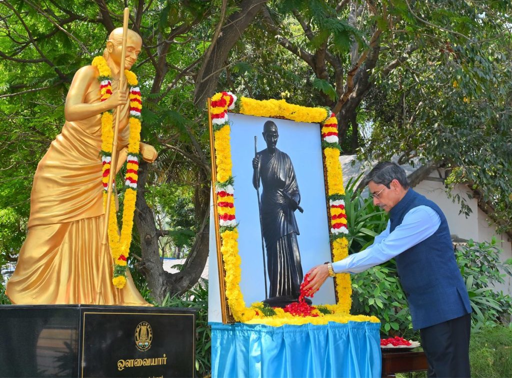 Thiru.R.N.Ravi, Hon’ble Governor of Tamil Nadu, paid floral tributes to Avvaiyar at Avvaiyar statue on the occasion of International Women’s Day at Lok Bhavan, Chennai – 08.03.2026
