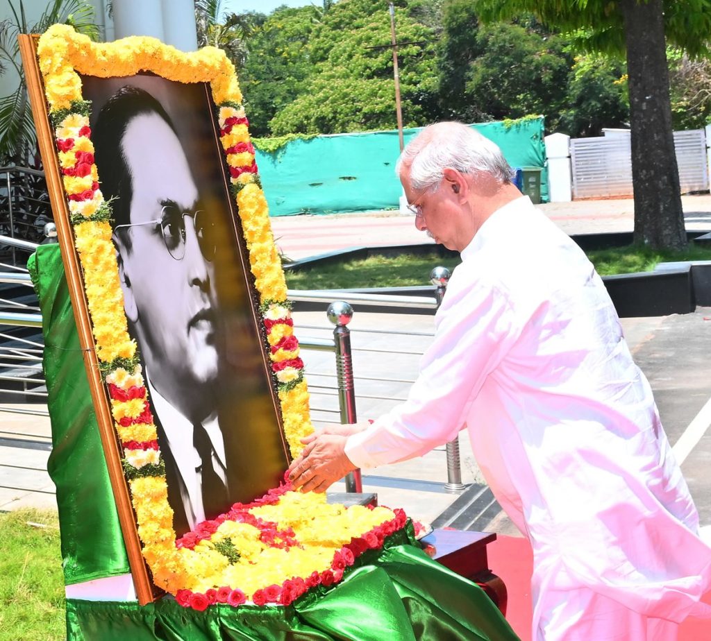 Thiru.Rajendra Vishwanath Arlekar, Hon’ble Governor of Tamil Nadu paid floral tributes to Bharat Ratna Dr. B.R. Ambedkar on his birth anniversary at Dr. B.R. Ambedkar statue, Lok Bhavan-14.04.2026